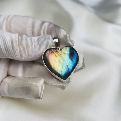 Labradoriet Ketting Hart - 925 Sterling Zilver - Echte edelsteen - Nikkelvrij